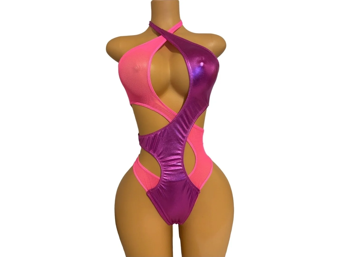 Image 1 of 4 Image 2 of 4 Image 3 of 4 Image 4 of 4 custom order for Kay Bye $160.00 Cris-cross bodysuit with matching tear away skirt Add To Cart Added! Cris-cross bodysuit with matching tear away skirt